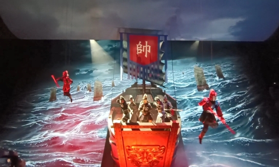 部重点实验室副主任、信息与通信工程学院演艺工程技术系主任蒋玉暕教授介绍说,通过该整套装备系统的紧密结合与协同工作,可支持从观演空间的整体静态感知重建、演员表演实时动态感知、投射内容实时动态生成,生成内容自适应地投射至各类复杂异形立体投影面、并可实现对虚实演出交互排演的编辑控制,达到“以演员表演为中心”的虚实内容集成与同步呈现。