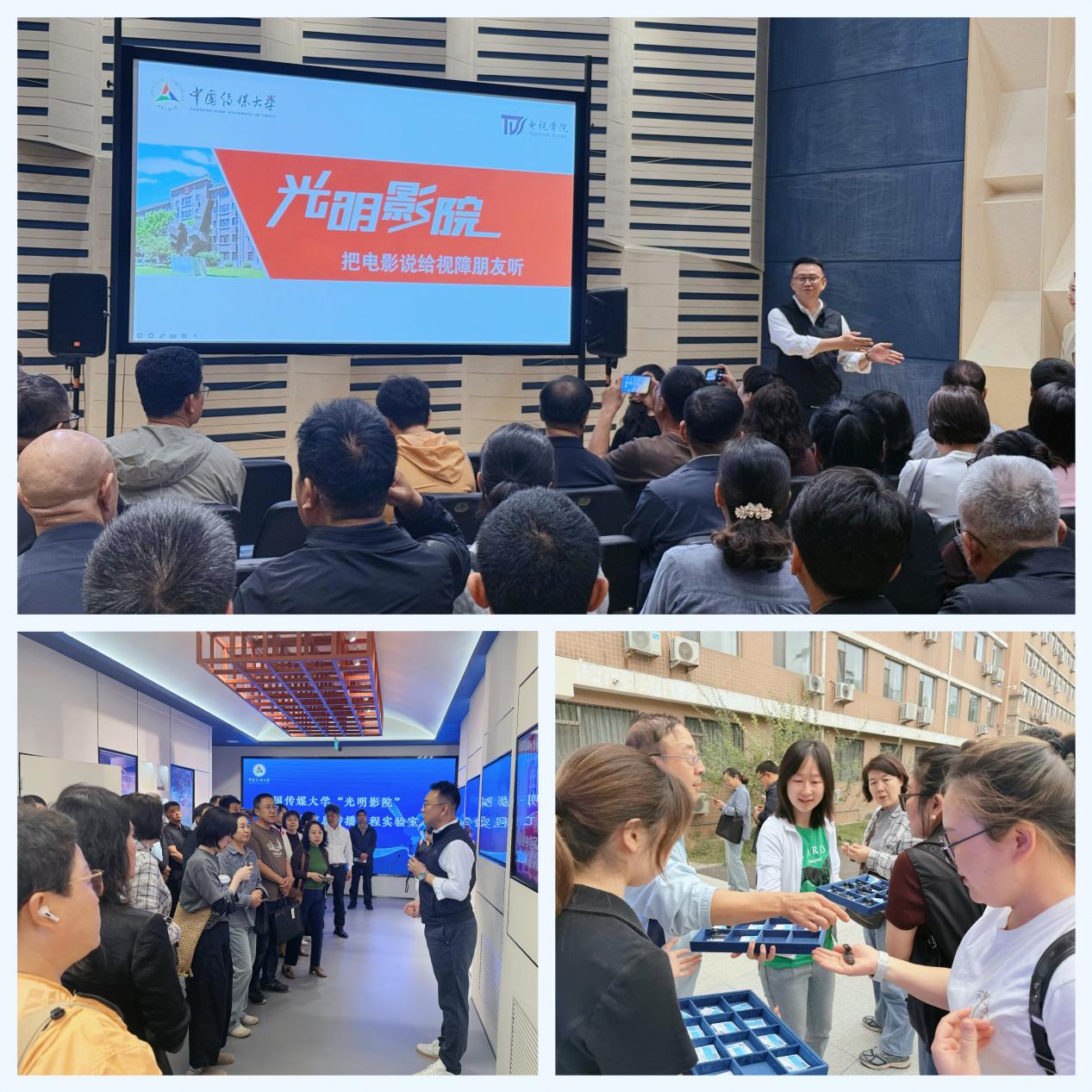 随后,代表们来到光明影院进行参观,听取了电视学院五级组织员付海征关于光明影院建设与发展的细致讲解,并观看了无障碍电影片段《我的父亲焦裕禄》。